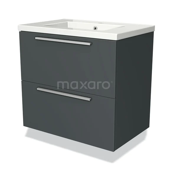 Modulo Waschtische | 70 cm Dunkelgrau Flach front Keramik 2 übereinanderliegende Schubladen