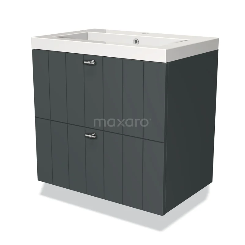 Modulo Waschtische | 70 cm Dunkelgrau Lamelle front Mineralguss 2 übereinanderliegende Schubladen