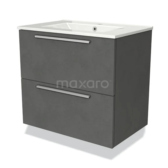 Modulo Waschtische | 70 cm Dunkelgrauer Beton Flach front Keramik 2 übereinanderliegende Schubladen