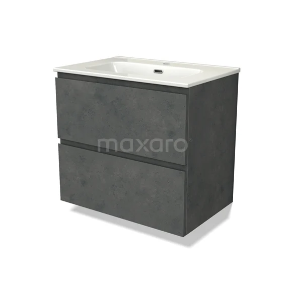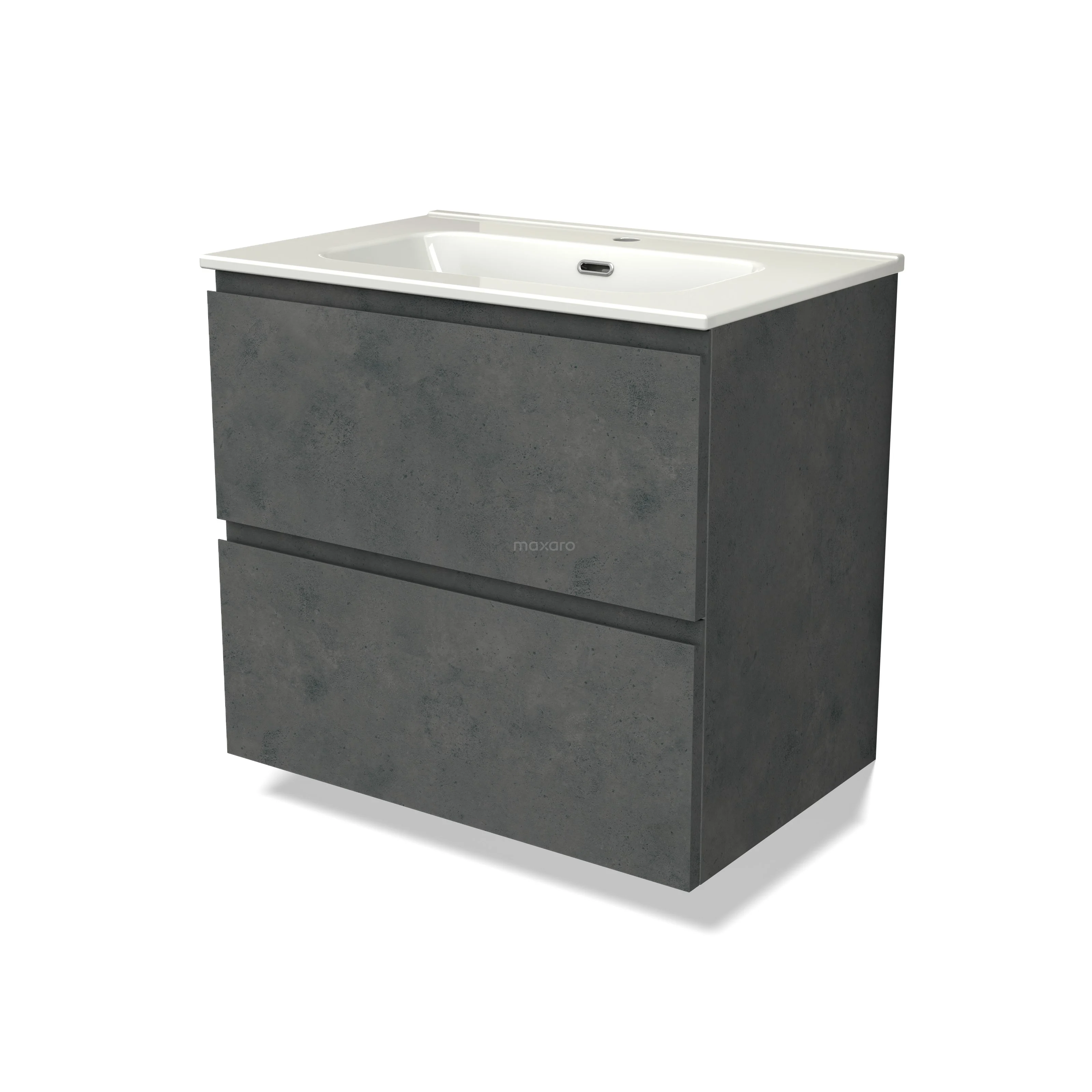 Modulo Waschtische | 70 cm Dunkelgrauer Beton Grifflos front Keramik 2 übereinanderliegende Schubladen