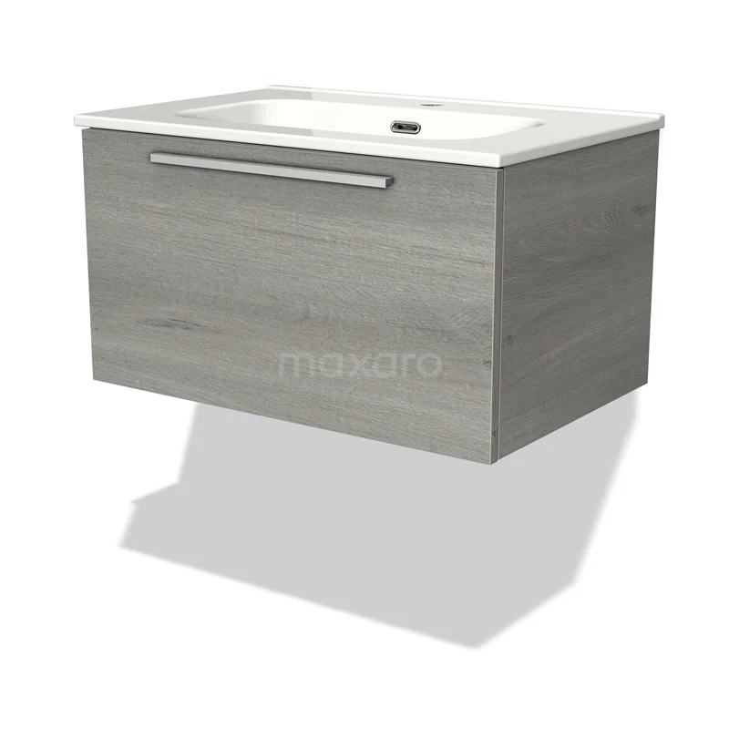 Modulo Waschtische | 70 cm Graue Eiche Flach front Keramik 1 Schublade