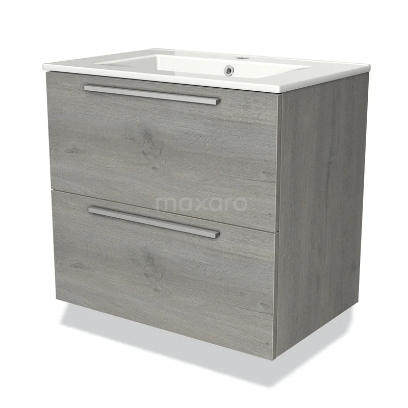Modulo Waschtische | 70 cm Graue Eiche Flach front Keramik 2 übereinanderliegende Schubladen