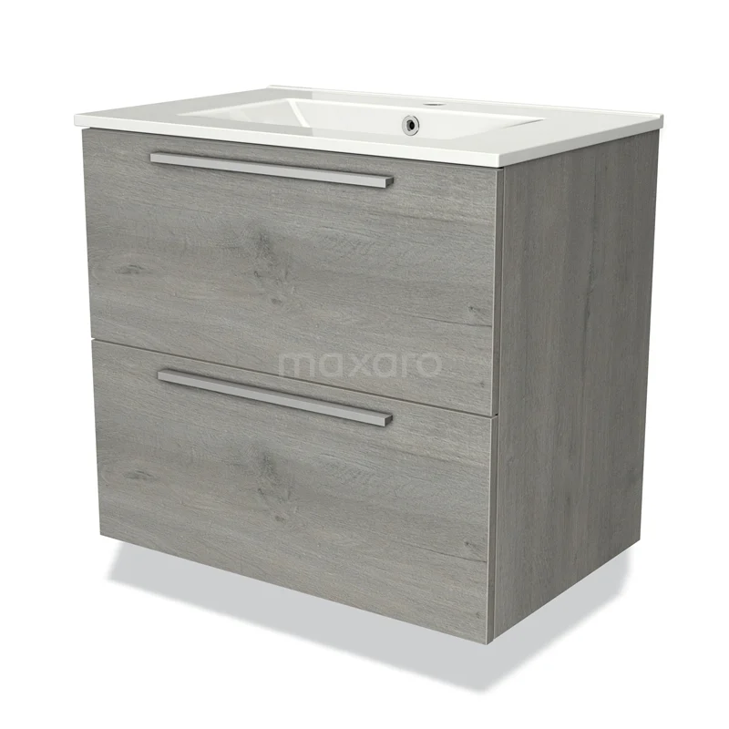 Modulo Waschtische | 70 cm Graue Eiche Flach front Keramik 2 übereinanderliegende Schubladen