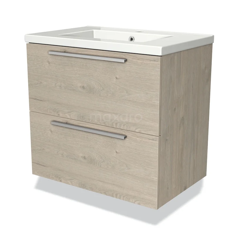 Modulo Waschtische | 70 cm Hellgraue Eiche Flach front Keramik 2 übereinanderliegende Schubladen