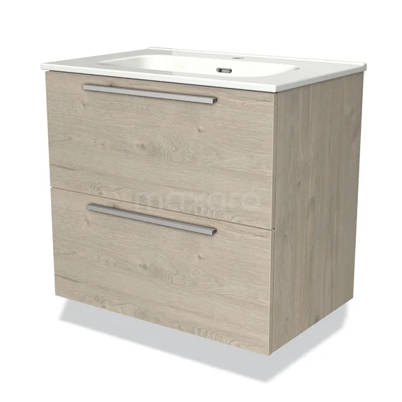 Modulo Waschtische | 70 cm Hellgraue Eiche Flach front Keramik 2 übereinanderliegende Schubladen