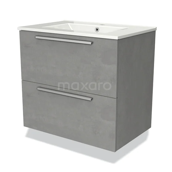 Modulo Waschtische | 70 cm Hellgrauer Beton Flach front Keramik 2 übereinanderliegende Schubladen