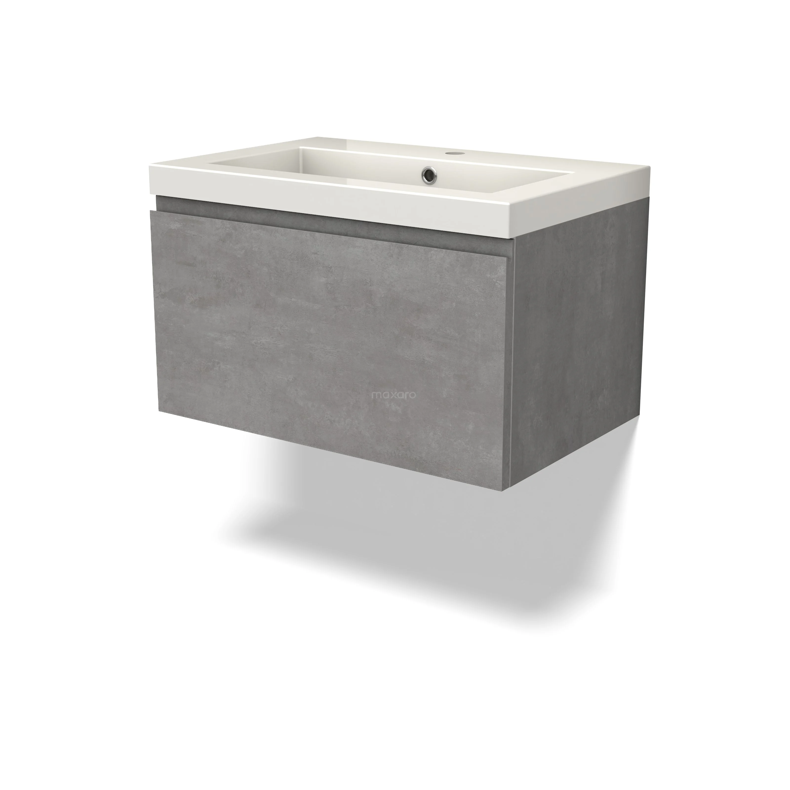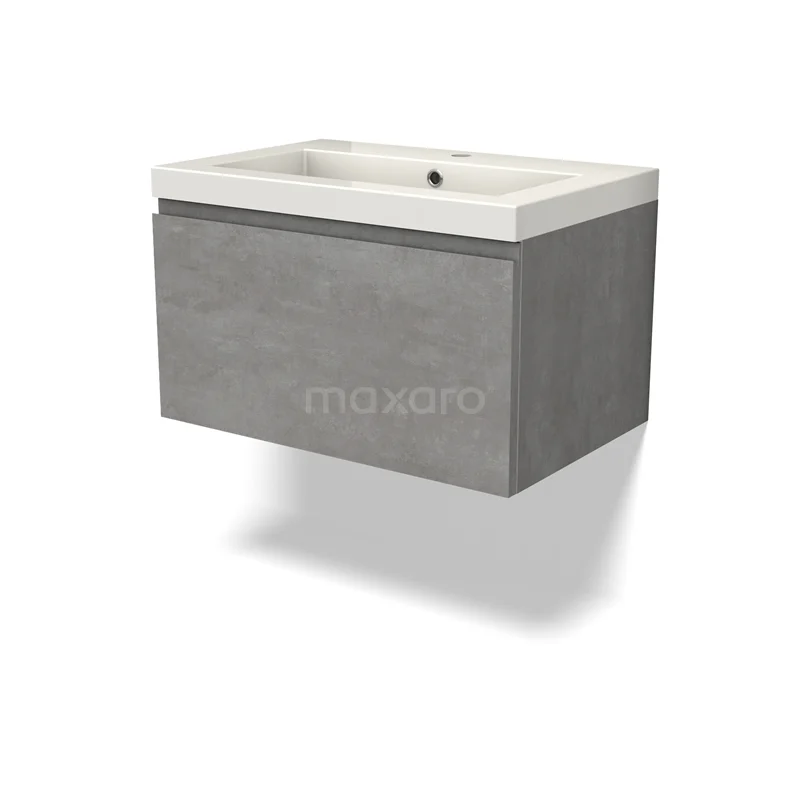 Modulo Waschtische | 70 cm Hellgrauer Beton Grifflos front Mineralguss 1 Schublade