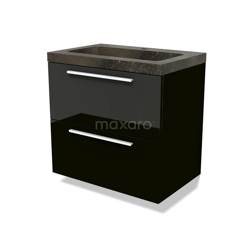 Modulo Waschtische | 70 cm Hochglanz Schwarz Flach front Naturstein 2 übereinanderliegende Schubladen