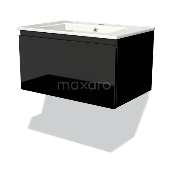 Modulo Waschtische | 70 cm Hochglanz Schwarz Grifflos front Keramik 1 Schublade