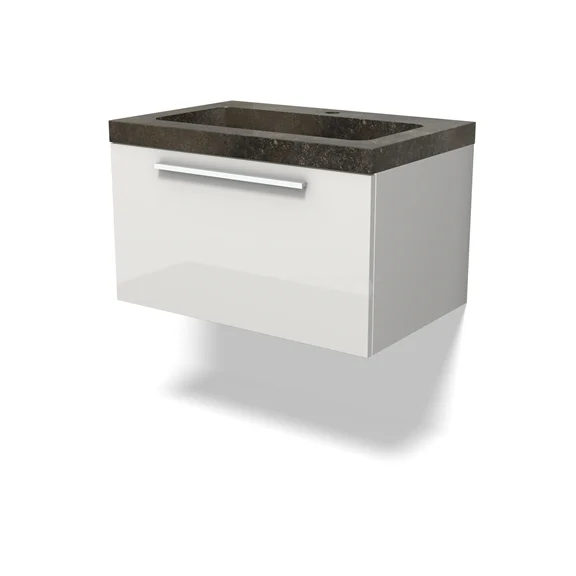 Modulo Waschtische | 70 cm Hochglanz Weiß Flach front Naturstein 1 Schublade