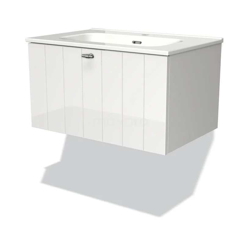 Modulo Waschtische | 70 cm Hochglanz Weiß Lamelle front Keramik 1 Schublade