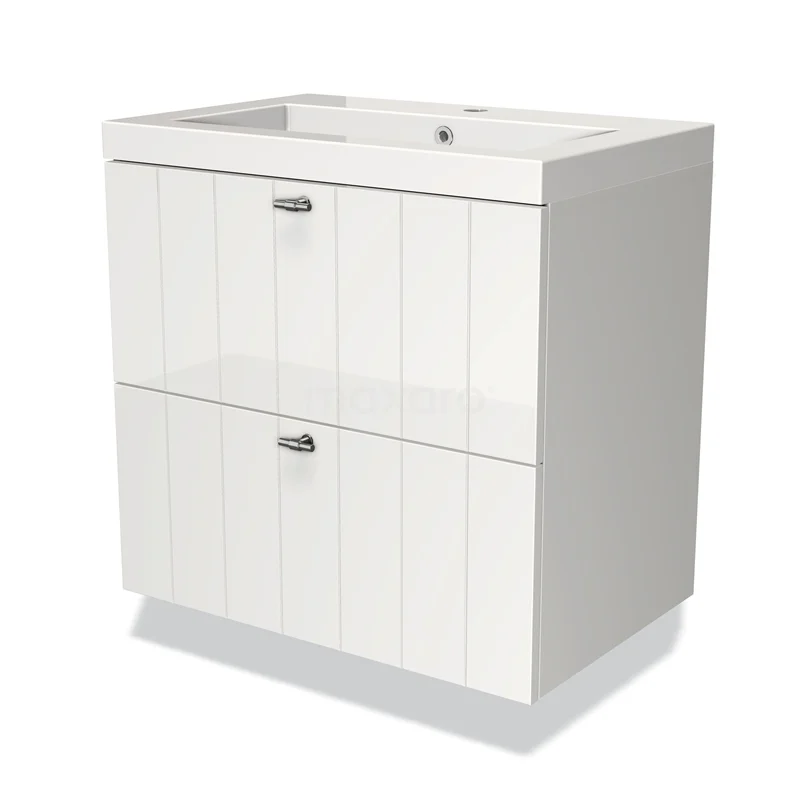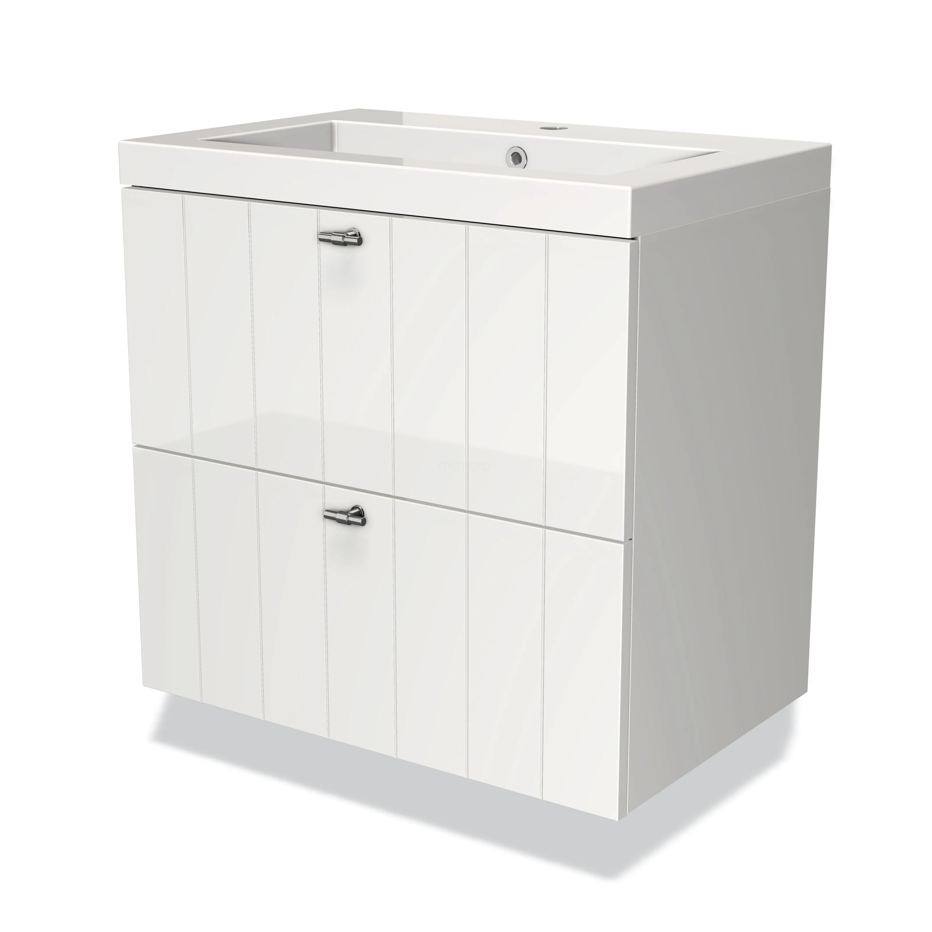 Modulo Waschtische | 70 cm Hochglanz Weiß Lamelle front Mineralguss 2 übereinanderliegende Schubladen