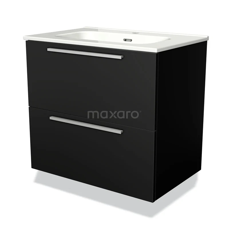 Modulo Waschtische | 70 cm Matt Schwarz Flach front Keramik 2 übereinanderliegende Schubladen