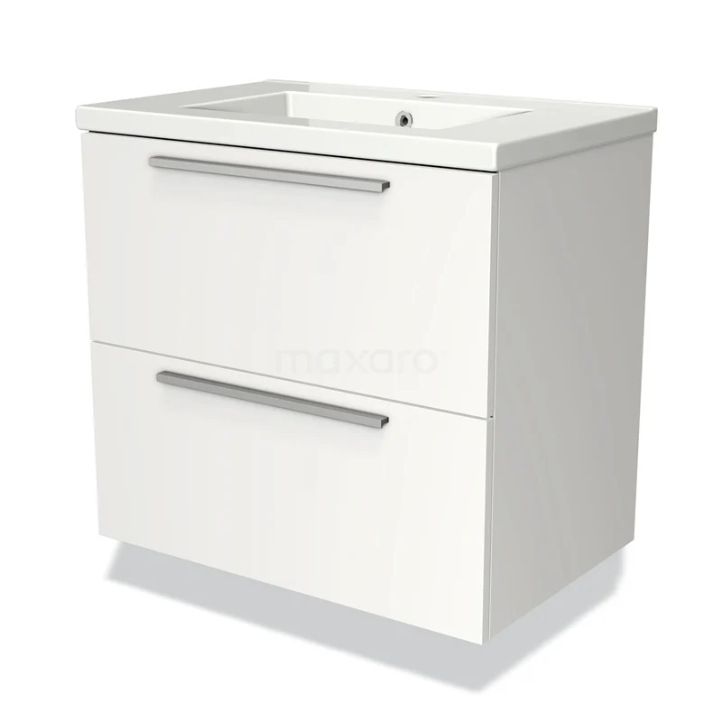Modulo Waschtische | 70 cm Matt Weiß Flach front Keramik 2 übereinanderliegende Schubladen