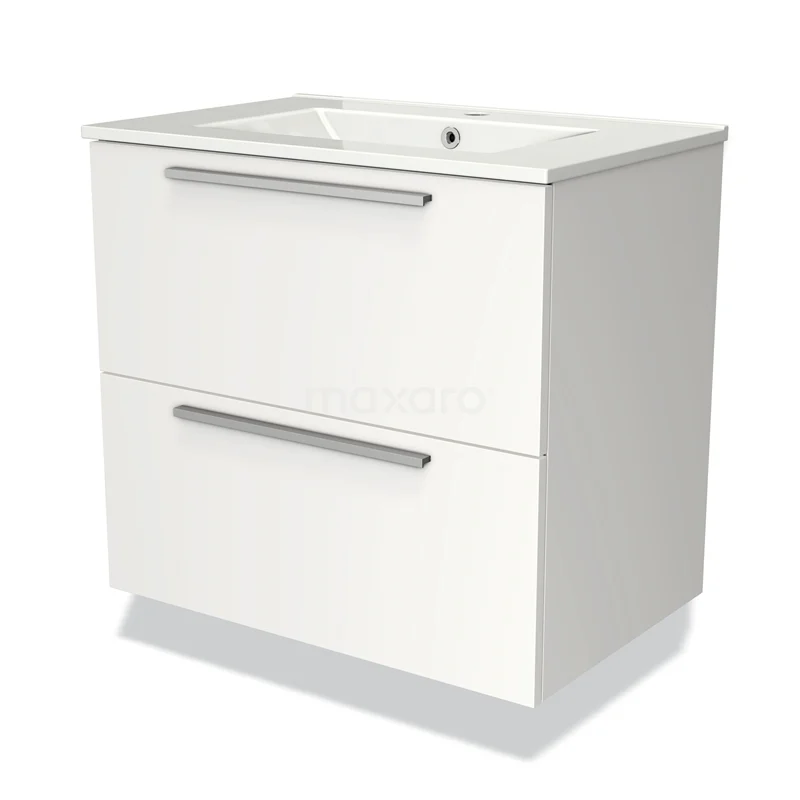 Modulo Waschtische | 70 cm Matt Weiß Flach front Keramik 2 übereinanderliegende Schubladen