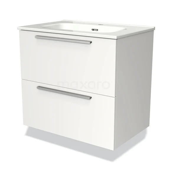 Modulo Waschtische | 70 cm Matt Weiß Flach front Keramik 2 übereinanderliegende Schubladen