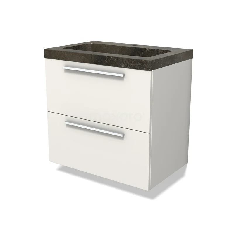 Modulo Waschtische | 70 cm Matt Weiß Flach front Naturstein 2 übereinanderliegende Schubladen