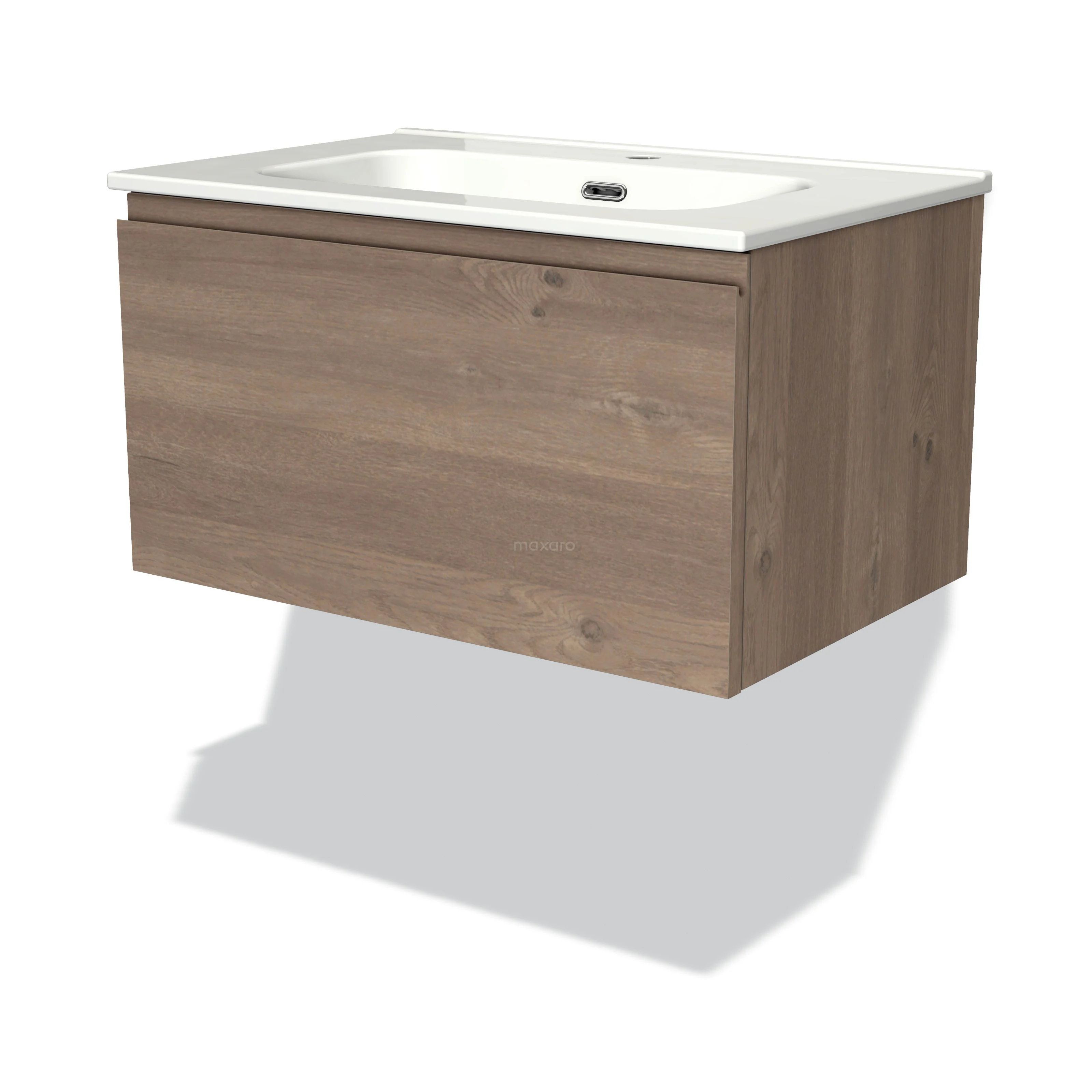 Modulo Waschtische | 70 cm Mittelbraune Eiche Grifflos front Keramik 1 Schublade