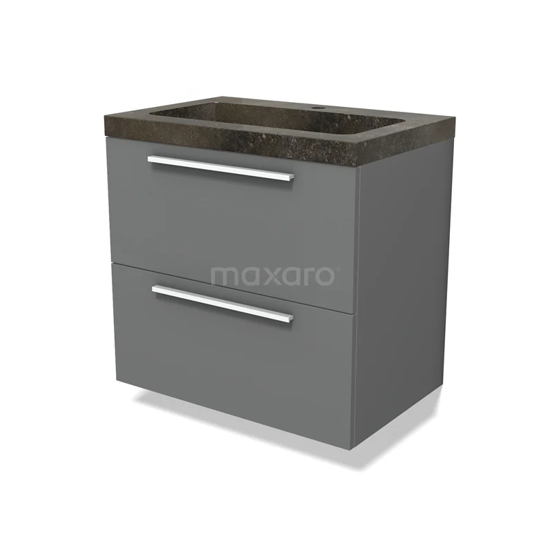Modulo Waschtische | 70 cm Mittelgrau Flach front Naturstein 2 übereinanderliegende Schubladen