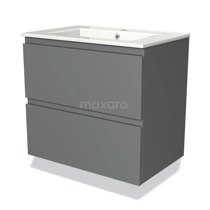 Modulo Waschtische | 70 cm Mittelgrau Grifflos front Keramik 2 übereinanderliegende Schubladen