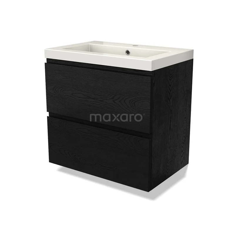 Modulo Waschtische | 70 cm Schwarze Eiche Grifflos front Mineralguss 2 übereinanderliegende Schubladen