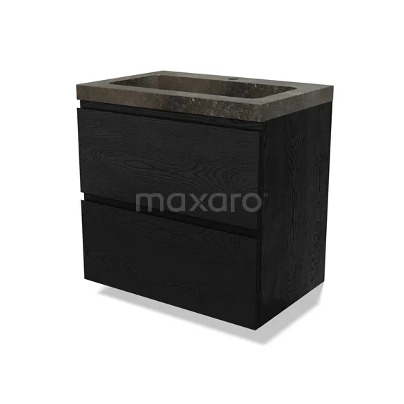 Modulo Waschtische | 70 cm Schwarze Eiche Grifflos front Naturstein 2 übereinanderliegende Schubladen