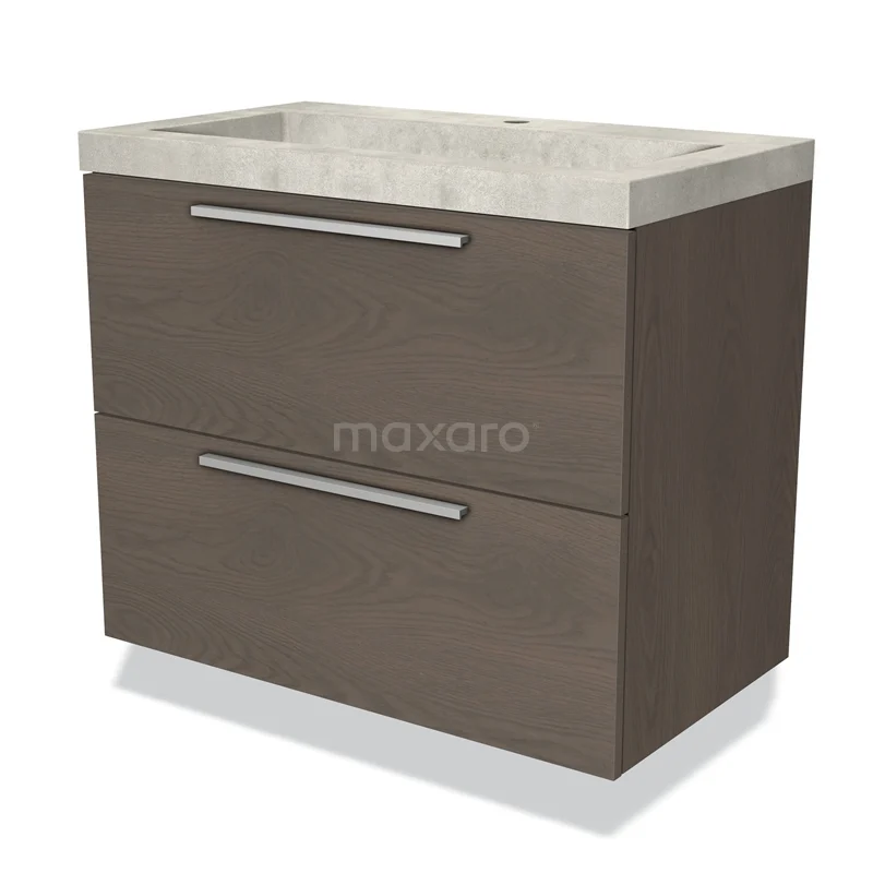 Modulo Waschtische | 80 cm Dunkelbraune Eiche Flach front Beton 2 übereinanderliegende Schubladen