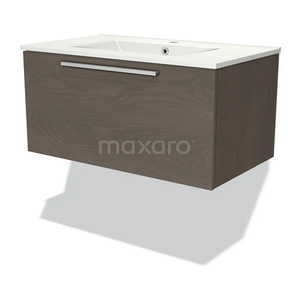 Modulo Waschtische | 80 cm Dunkelbraune Eiche Flach front Keramik 1 Schublade