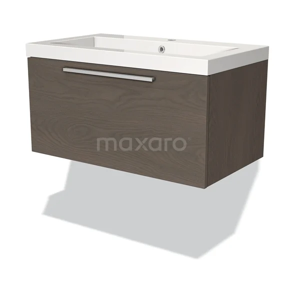 Modulo Waschtische | 80 cm Dunkelbraune Eiche Flach front Mineralguss 1 Schublade