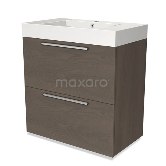 Modulo Waschtische | 80 cm Dunkelbraune Eiche Flach front Mineralguss 2 hohe Schubladen übereinanderliegend