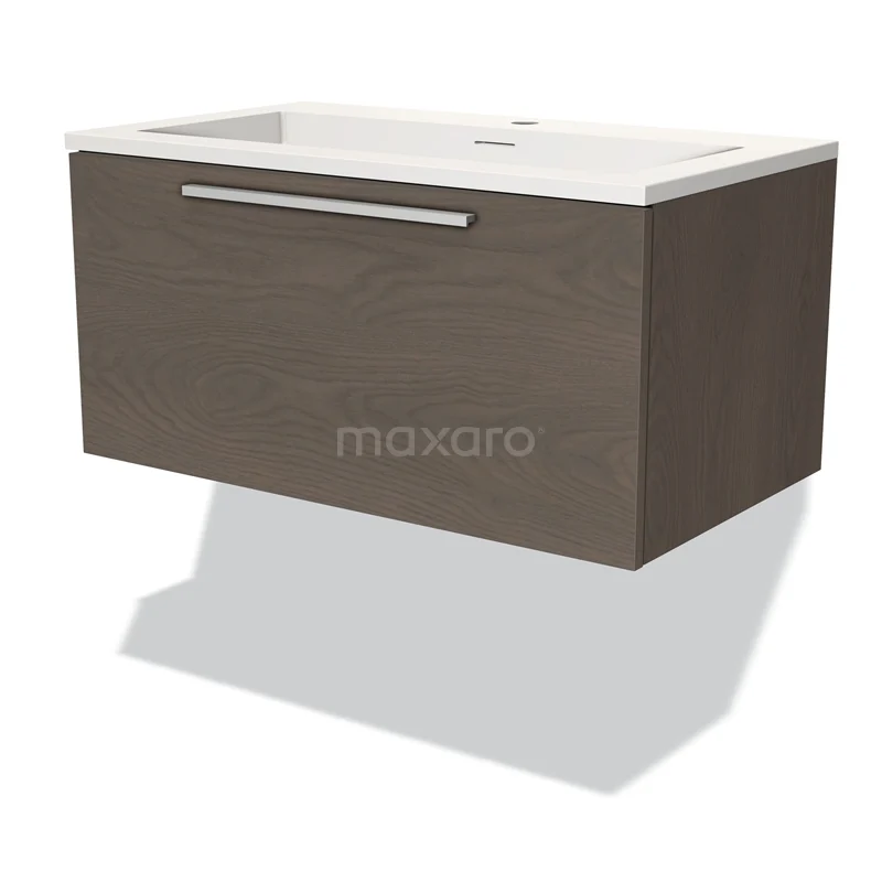 Modulo Waschtische | 80 cm Dunkelbraune Eiche Flach front Solid Surface 1 Schublade