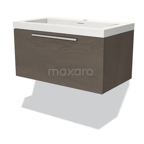 Modulo Waschtische | 80 cm Dunkelbraune Eiche Flach front Solid Surface 1 Schublade