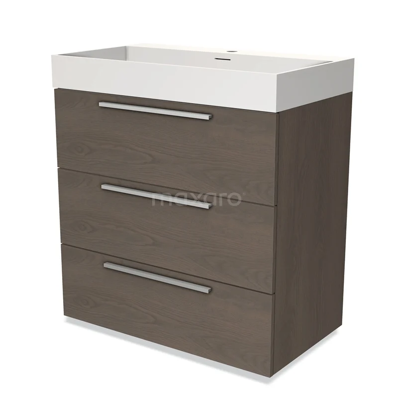Modulo Waschtische | 80 cm Dunkelbraune Eiche Flach front Solid Surface 3 Schubladen