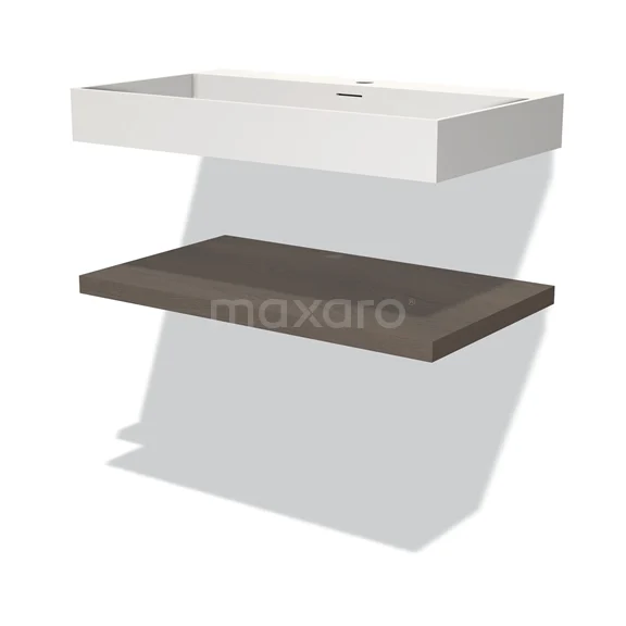 Modulo Waschtische | 80 cm Dunkelbraune Eiche front Solid Surface Waschbecken mit Platte