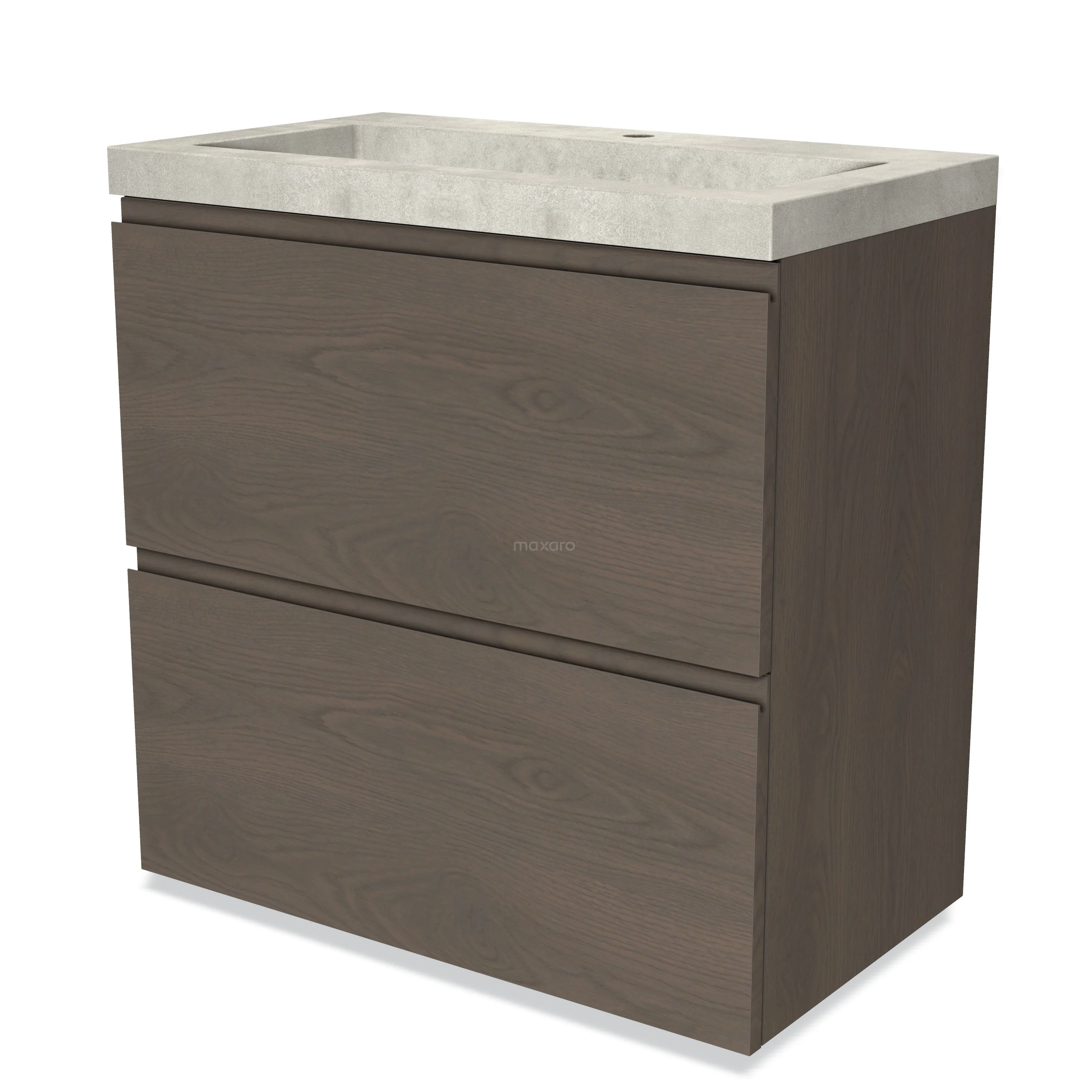 Modulo Waschtische | 80 cm Dunkelbraune Eiche Grifflos front Beton 2 hohe Schubladen übereinanderliegend