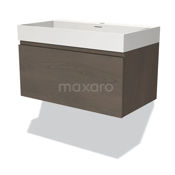 Modulo Waschtische | 80 cm Dunkelbraune Eiche Grifflos front Solid Surface 1 Schublade
