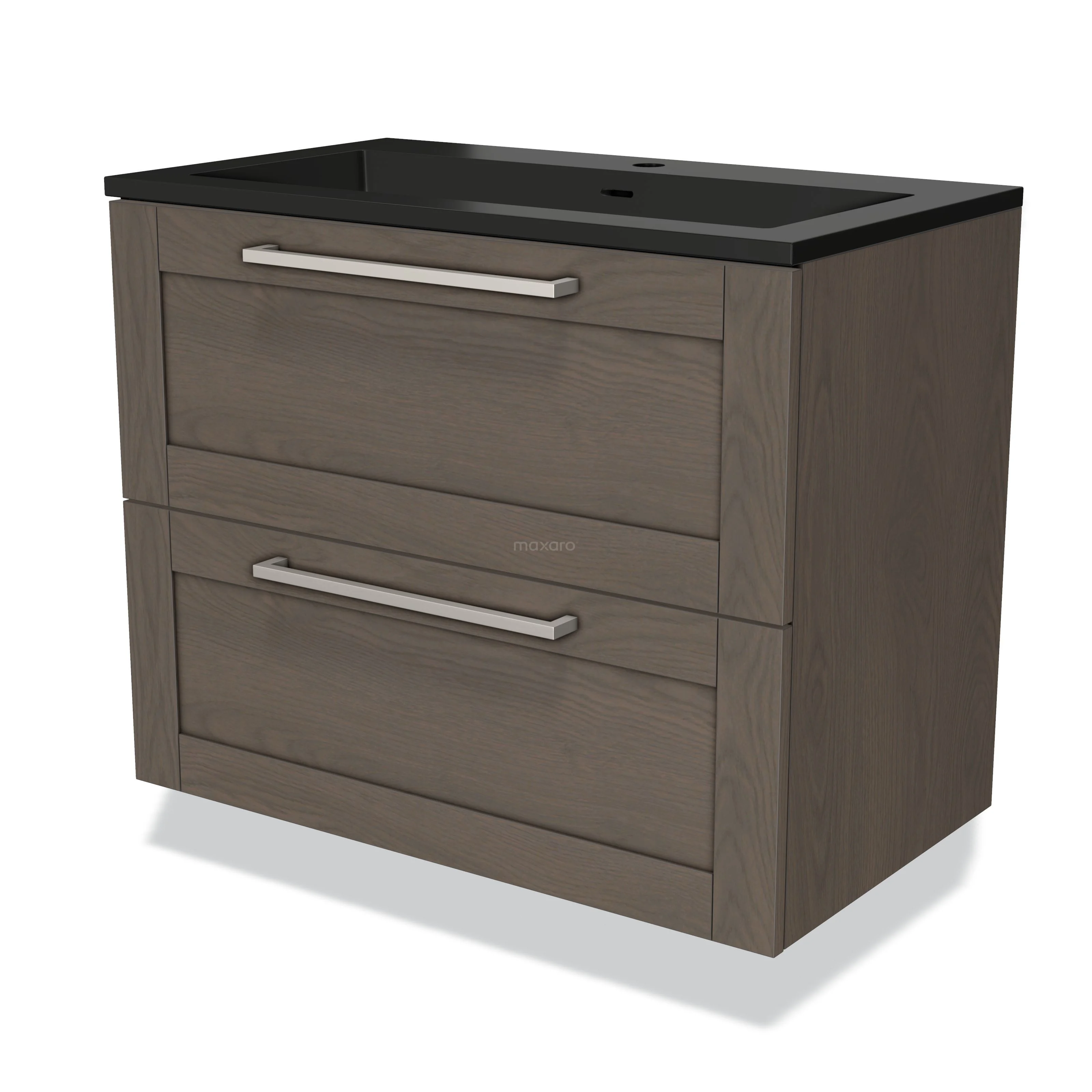 Modulo Waschtische | 80 cm Dunkelbraune Eiche Rahmen front Quarz 2 übereinanderliegende Schubladen