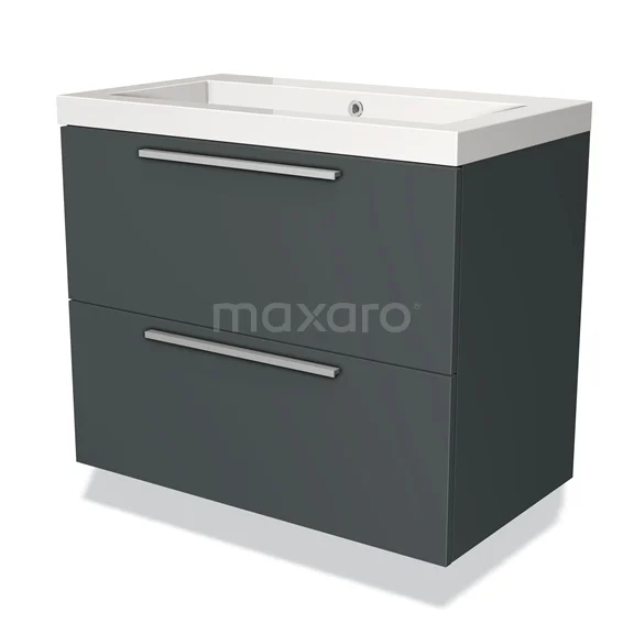 Modulo Waschtische | 80 cm Dunkelgrau Flach front Mineralguss 2 übereinanderliegende Schubladen