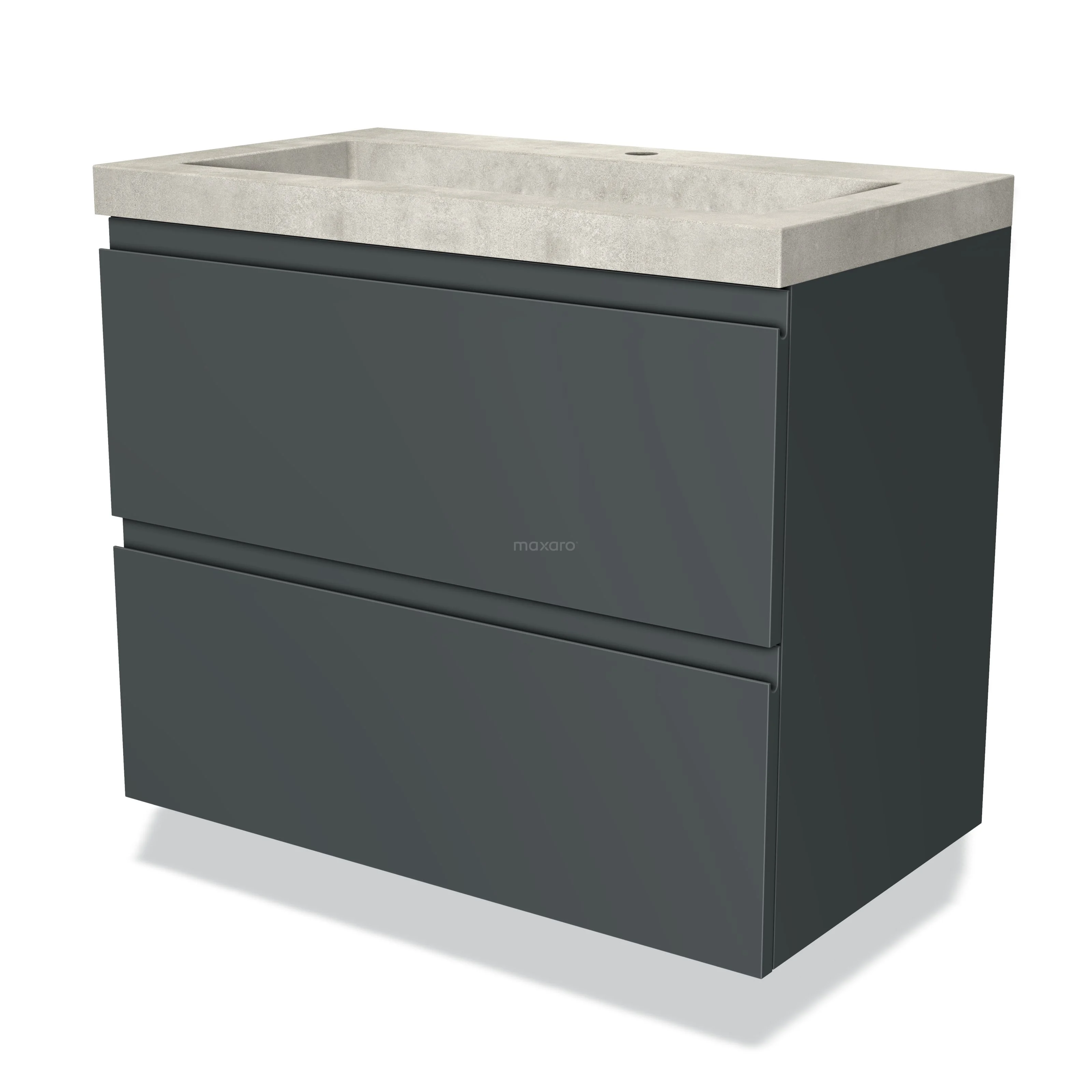 Modulo Waschtische | 80 cm Dunkelgrau Grifflos front Beton 2 übereinanderliegende Schubladen