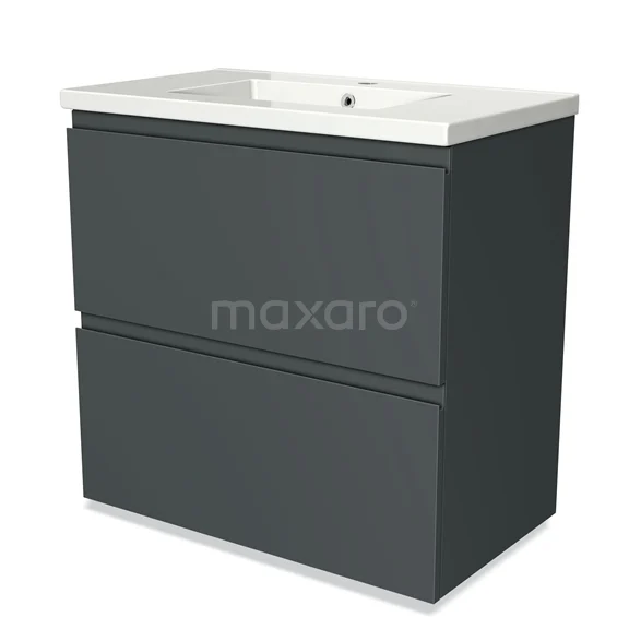 Modulo Waschtische | 80 cm Dunkelgrau Grifflos front Keramik 2 hohe Schubladen übereinanderliegend