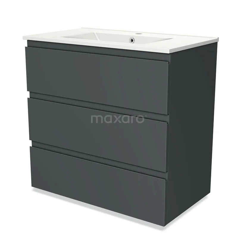 Modulo Waschtische | 80 cm Dunkelgrau Grifflos front Keramik 3 Schubladen