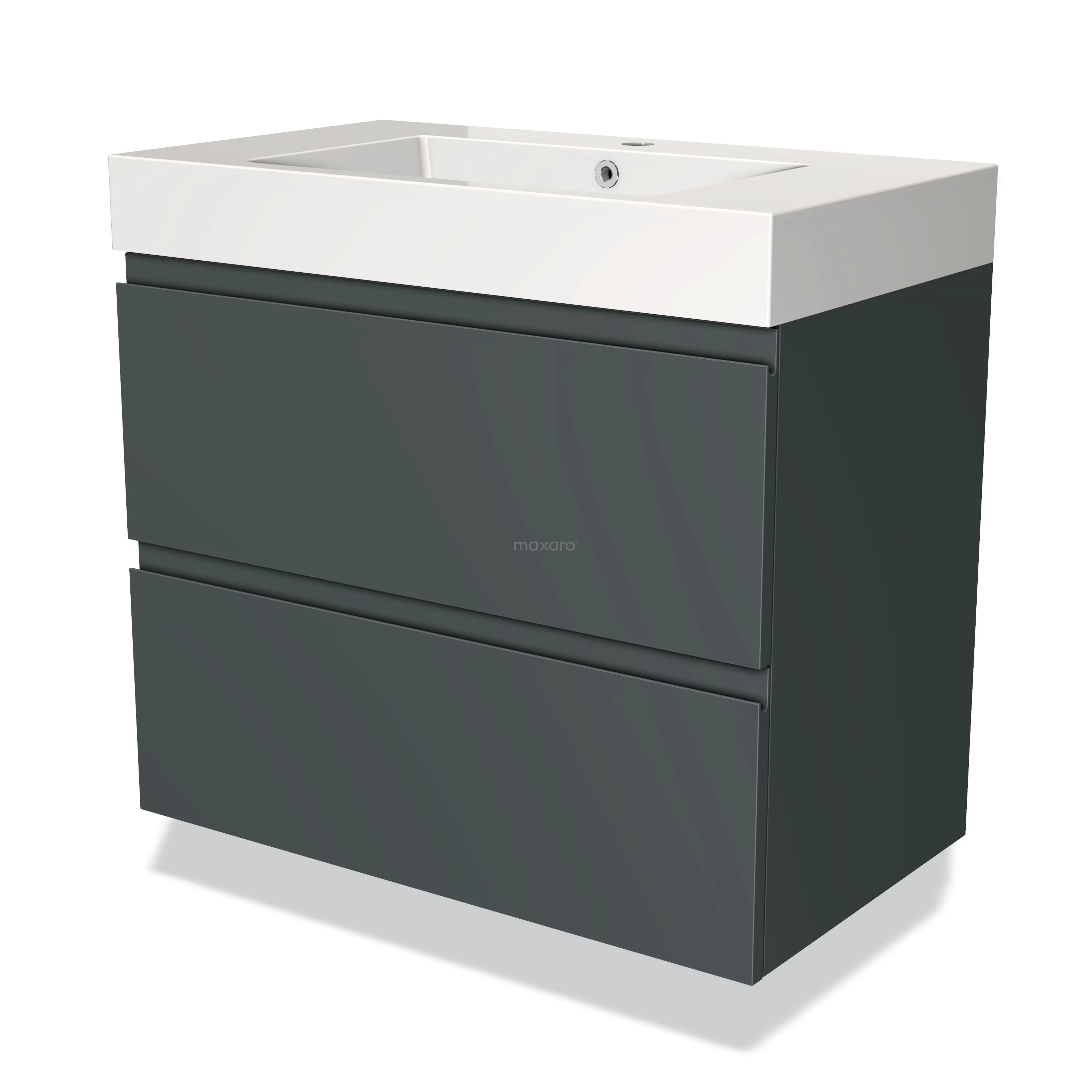 Modulo Waschtische | 80 cm Dunkelgrau Grifflos front Mineralguss 2 übereinanderliegende Schubladen