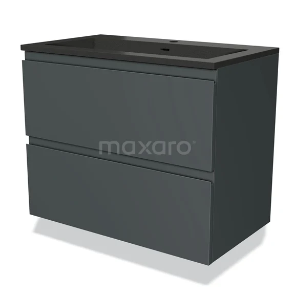 Modulo Waschtische | 80 cm Dunkelgrau Grifflos front Quarz 2 übereinanderliegende Schubladen