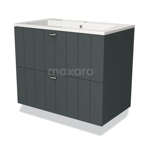 Modulo Waschtische | 80 cm Dunkelgrau Lamelle front Mineralguss 2 übereinanderliegende Schubladen