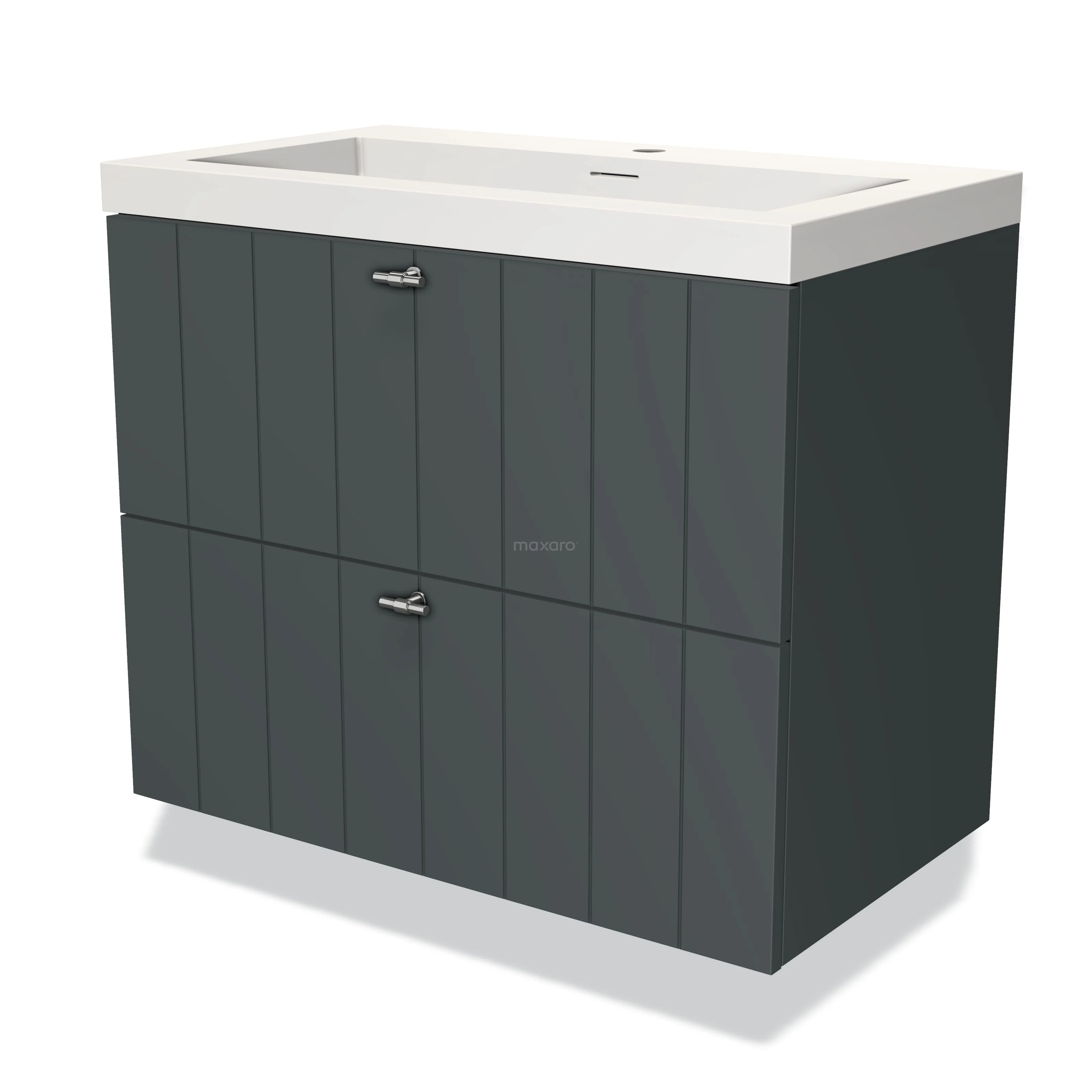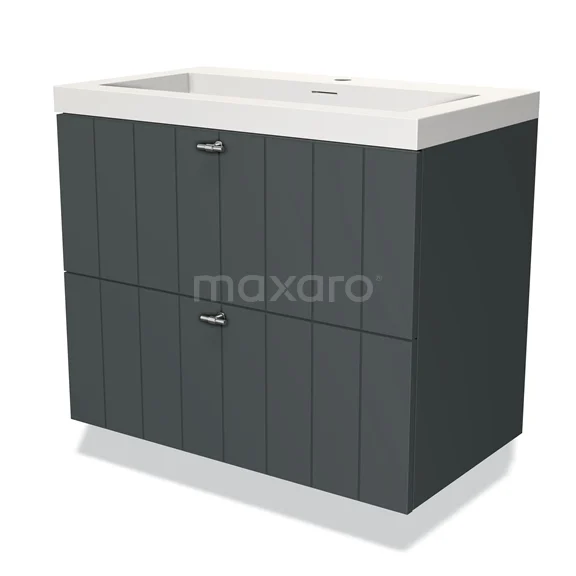 Modulo Waschtische | 80 cm Dunkelgrau Lamelle front Solid Surface 2 übereinanderliegende Schubladen
