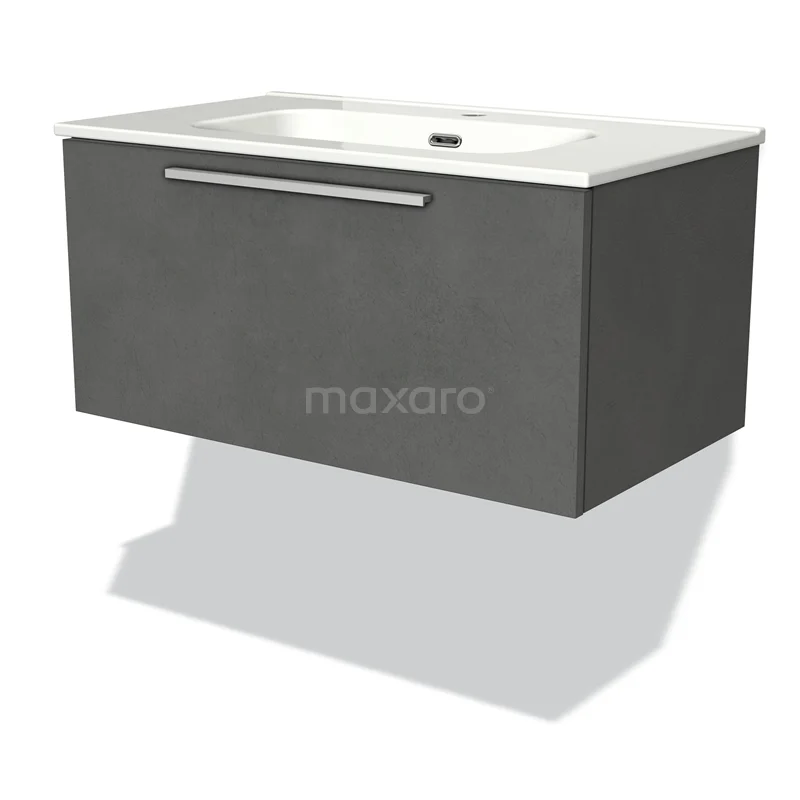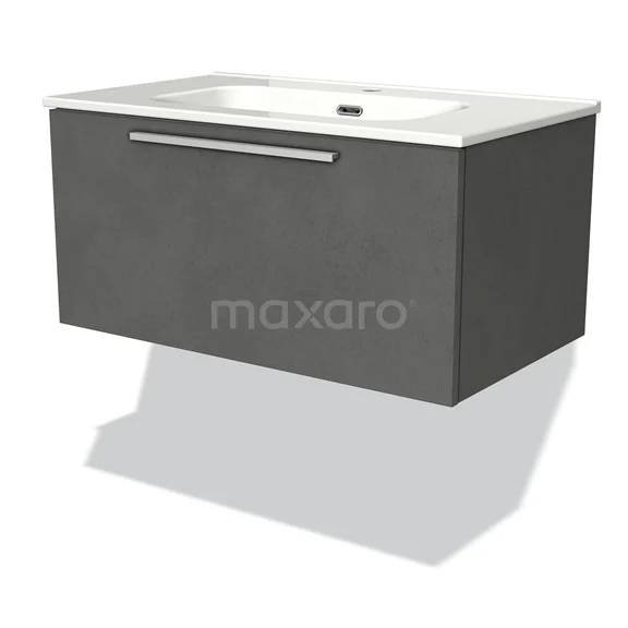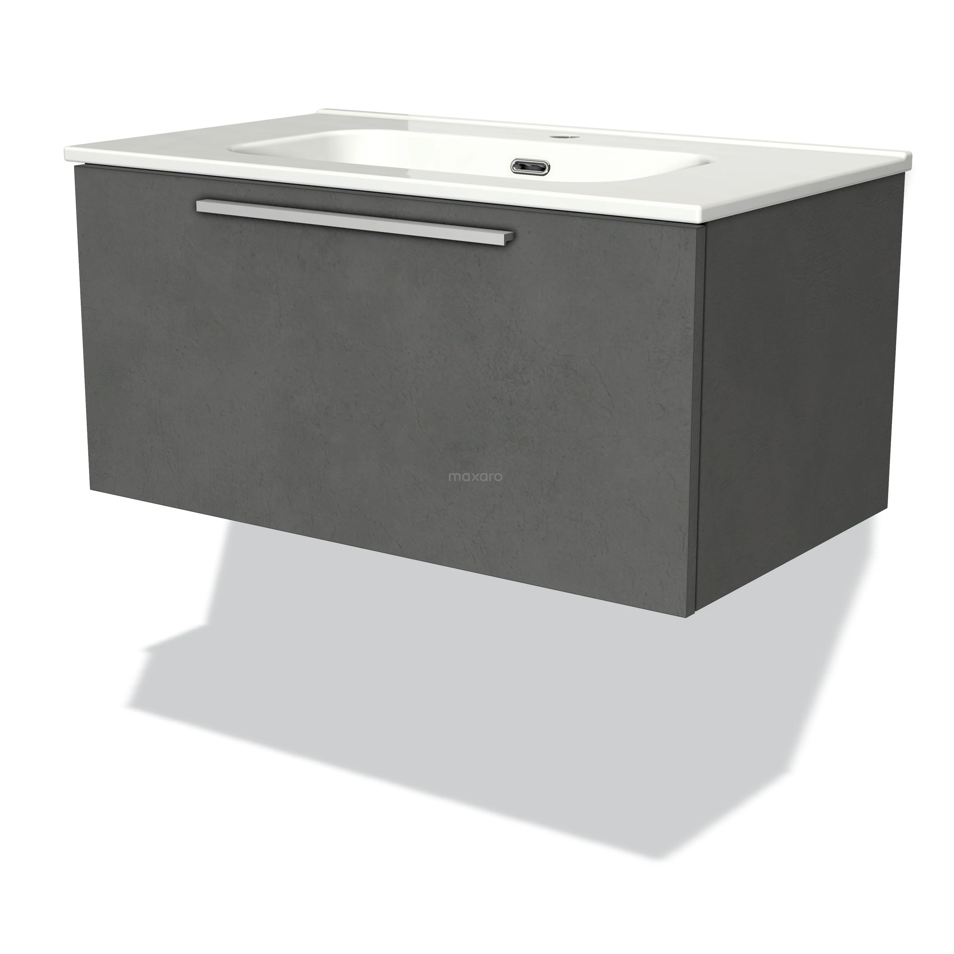 Modulo Waschtische | 80 cm Dunkelgrauer Beton Flach front Keramik 1 Schublade