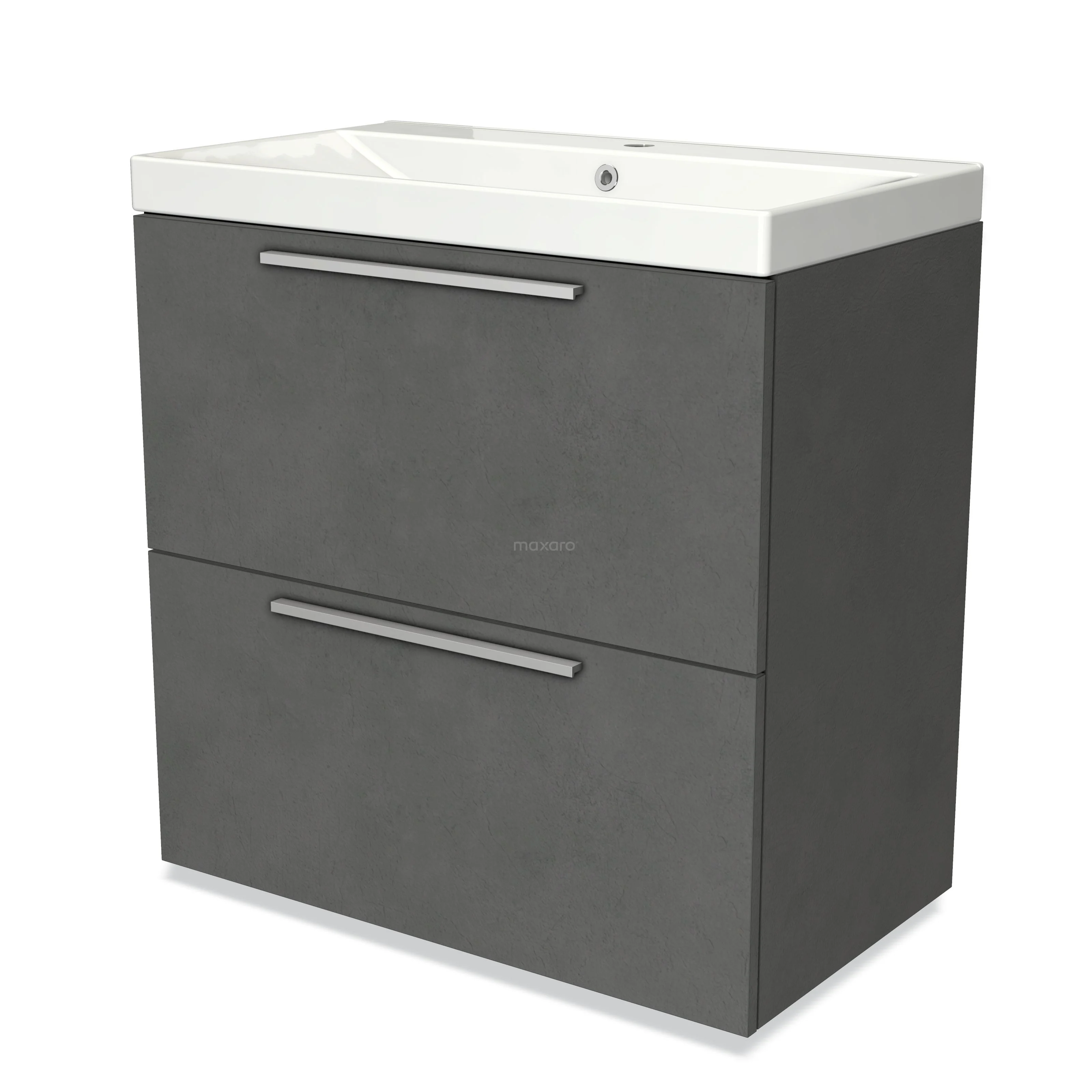 Modulo Waschtische | 80 cm Dunkelgrauer Beton Flach front Keramik 2 hohe Schubladen übereinanderliegend