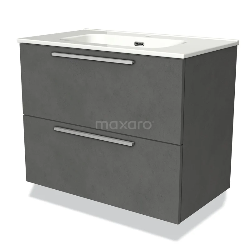 Modulo Waschtische | 80 cm Dunkelgrauer Beton Flach front Keramik 2 übereinanderliegende Schubladen