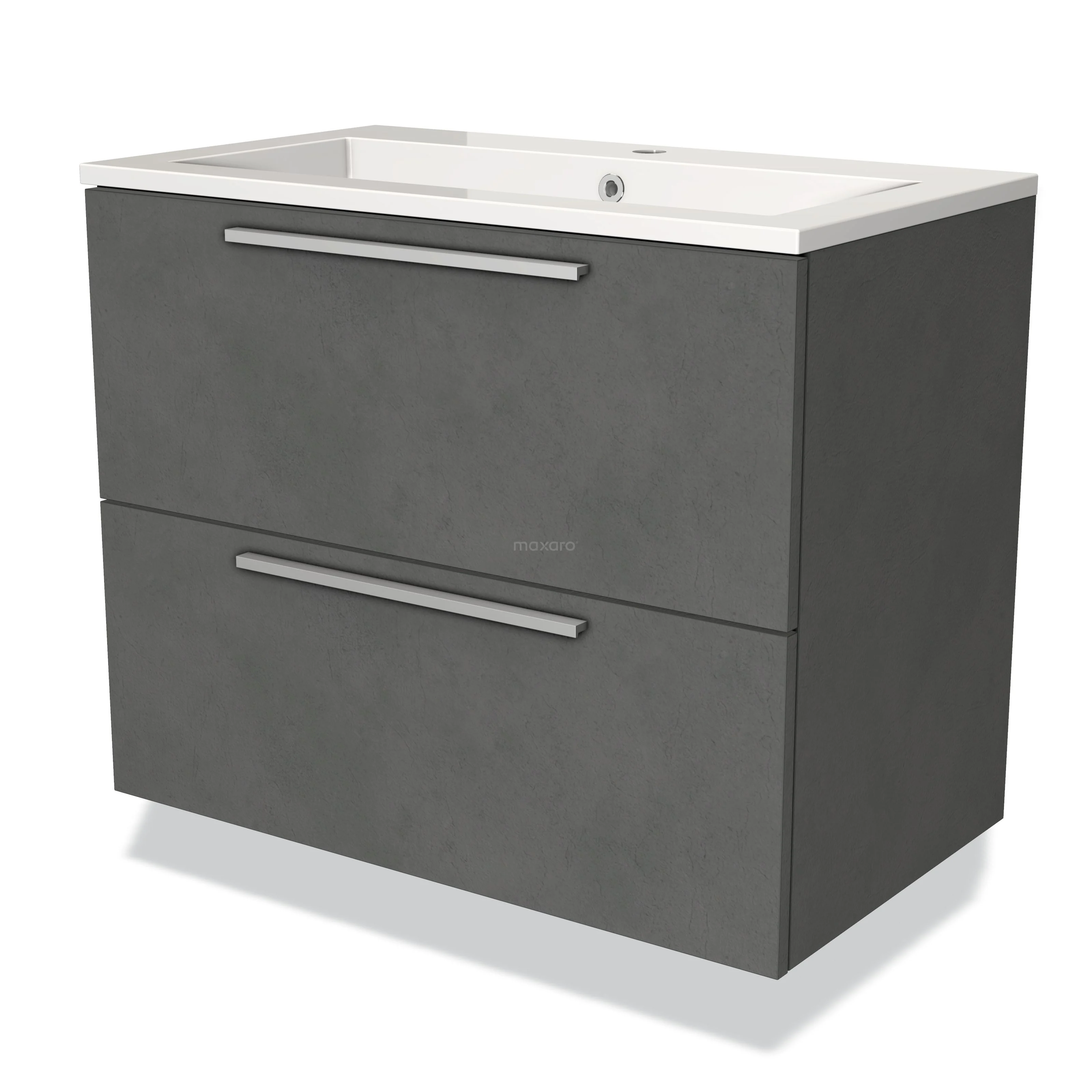 Modulo Waschtische | 80 cm Dunkelgrauer Beton Flach front Mineralguss 2 übereinanderliegende Schubladen
