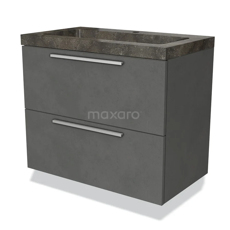 Modulo Waschtische | 80 cm Dunkelgrauer Beton Flach front Naturstein 2 übereinanderliegende Schubladen